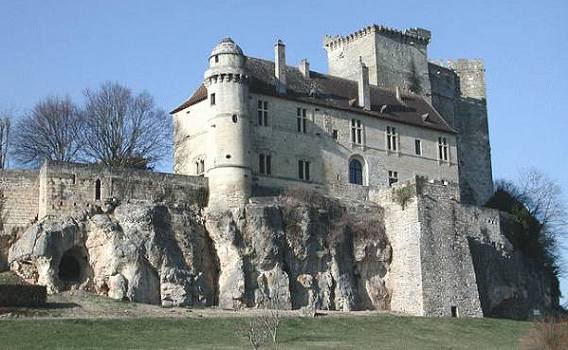 The Chateau is remarkable. It's not a fairy tale structure. The medieval donjon rises tall and efficiently business like over the valley on a rock promontory. At the base, on the left hand side, you might be able to see a cave in the cliff, which is connected to the defense of the ramparts. It was remodeled. so to speak, in the 16th century. Parts of the chateau are open to the public and many cultural events are held there throughout the year.